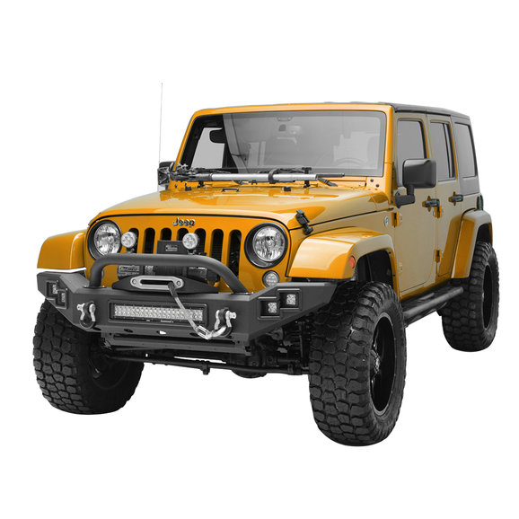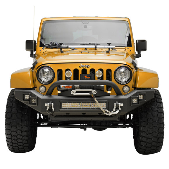 The Paramount Automotive Full Width LED Light Style Front Bumper for Jeep Wrangler JK 2 Door & Unlimited JK 4 Door is the versatile front protection for your Jeep that you need for your next off road adventure. This bumper includes 4 LED cube lights, a 10" center light bar, an integrated winch mount, and D-rings with isolators with mounts that are welded front and back for extra strength. The heavy duty steel construction and multiple features give you the perfect bumper for all your off road needs.