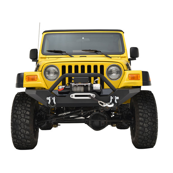 The Paramount Automotive Heavy Duty Rock Crawler Front Bumper for Jeep Wrangler YJ, TJ, & Unlimited TJ is the versatile front protection for your Jeep that you need for your next off road adventure. This mid width heavy duty bumper includes d-rings with isolators in mounts, and can accept an integrated winch up to 12,000lbs. The heavy duty steel construction is manufactured from durable 5/32 steel and 2X.120 tubing. This bumper has multiple features that give you the perfect bumper for all your off road needs.