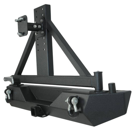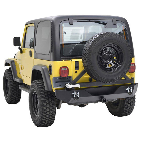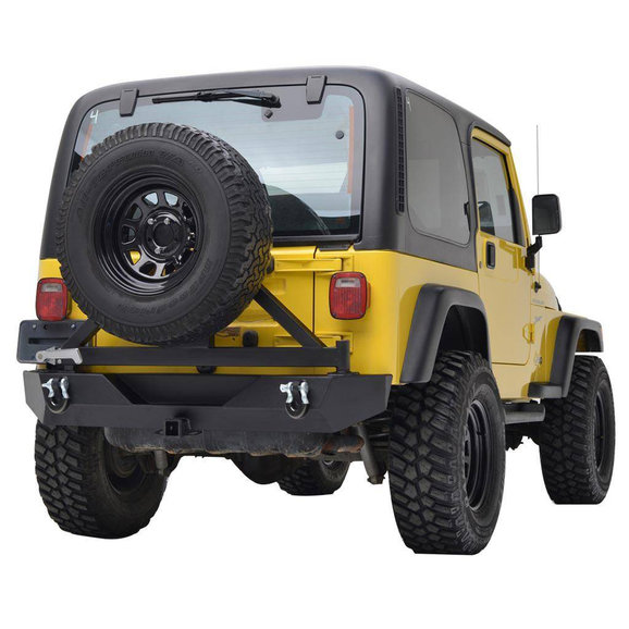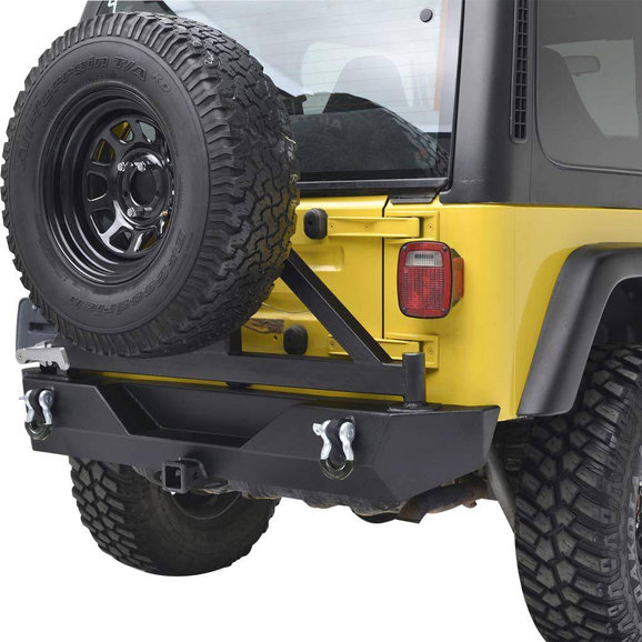 The heavy-duty Paramount Rear Bumper with Tire Carrier is designed for the Jeep Wrangler TJ and YJ. Made from 5/32" steel with integrated D-Ring tabs that are welded inside and out for strength. Also including an integrated 2" class III receiver hitch. Allowing you to easily attach a bike rack or cargo basket for your overland adventure.