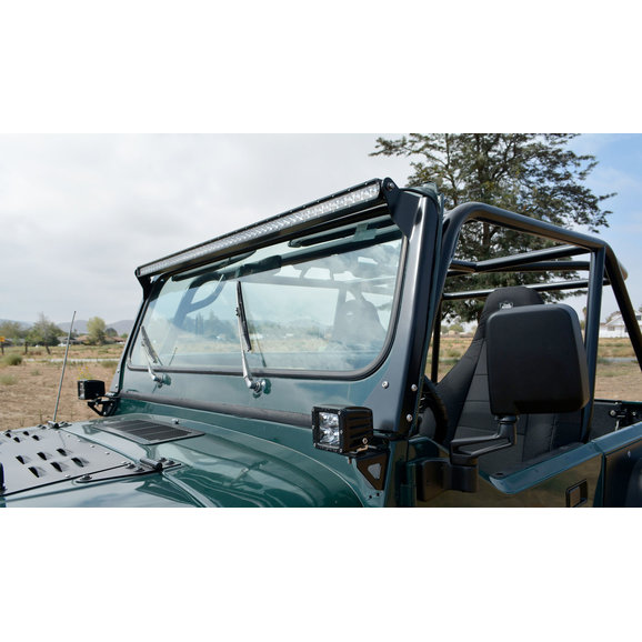 This Poison Spyder Light Bar Mount is an easy, great-looking way to mount a Rigid Industries 50" E-Series or 50" SR-Series LED light bar over the windshield of your Jeep YJ or CJ. These Light Bar Mounts are CNC laser cut from 3/16" thick plate steel, then precision brake-formed and finish welded. The contoured design hugs the slight curve of the Jeep's windshield A-pillar and provides the strength need to hold the Rigid Industries 50" light bar securely in place on the highway or in rough terrain. Installation is simple, using the existing lower windshield bracket bolts. Rubber liners are provided to protect the Jeep's paint underneath the mounts. Mounts are shipped as bare steel, ready for you to paint or powder coat in the color of your choice.