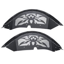 The Versatile Poison Spyder Front Inner Fender Liners for Jeep Wrangler JL & Gladiator JT are not only designed for stock suspensions but also can be fitted to provide a wide range of fitment options, including front coil over suspension. A single kit includes both vented and solid inserts for the front and rear removable panels. Vented stainless mesh inserts allow air to circulate through the engine bay. Solid aluminum inserts are Spydershell armor coated and will protect the Engine bay from debris.
