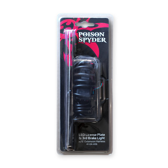 The Poison Spyder LED License Plate & 3rd Brake Light provides high intensity, low-power draw LED lights for both the license plate and the third brake light, on a single compact, great looking package.