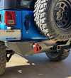 The RockBrawler II is the latest evolution in JK rear bumpers, incorporating many features requested by customers, and product improvements born of real world use and testing of the original RockBrawler. This bumper combines the best features to maximize performance on the toughest trails with some of the more refined traits not normally needed on a dedicated rock crawler. Its most prominent feature is the all new RockBrawler II Tire Carrier, which connects to the tailgate for easy, single-action opening. It's also slightly wider and deeper than the orignal RockBrawler for increased corner protection, and features an integrated hitch. Available in SpyderShell Armor Coat which is an industrial grade, super-durable architectural finish in semi-gloss black. SpyderShell Armor Coat is engineered to retain its appearance through years of exposure to sun and weather. SpyderShell is a coating process unmatched by any other Jeep armor after-market manufacturer.