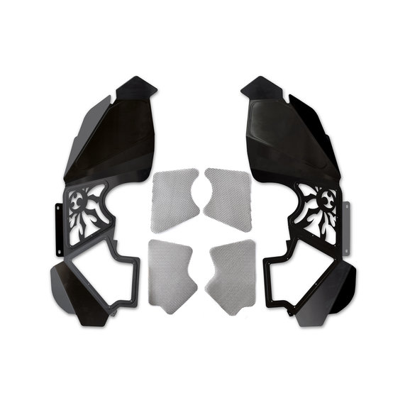 Poison Spyder Vented Inner Fenders are the best looking, best functioning aftermarket front inner fenders for your Jeep Wrangler JK. Poison Spyder JK Vented Inner Fenders dress up the look of your front wheel wells with beautiful CNC laser cut, bead-rolled and brake-formed aluminum panels with stainless steel mesh vented inserts. The main panels are made of 16 gauge 5052 aluminum, while the vent panels are heavy duty stainless steel wire mesh. The CNC bead-rolled features look great and give the product a distinctive motorsports flare, but the beads actually help stiffen the product for further strength. The vented feature helps promote airflow through the engine bay, helping your Jeep run cooler. These look great with Poison Spyder Crusher Flares, but they're a great addition to any Jeep JK Wrangler, whether it still has the stock flares, aftermarket plastic flares or other manufacturers' metal flares.