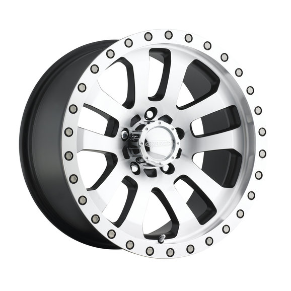 Pro Comp Alloys combine unique styling are light weight Aerospace alloys and state of the art Counter Pressure Casting Technology provide the strength, while the milled finish and black accent powdercoat creates a look all its own. The simulated beadlock design is made for the road, trail or show to make an impacting statement.