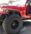 15x8 with -19 offset, stock height 1997 4.0 Sahara with 5spd manual transmission LT N78-15 C Buckshot Mudders