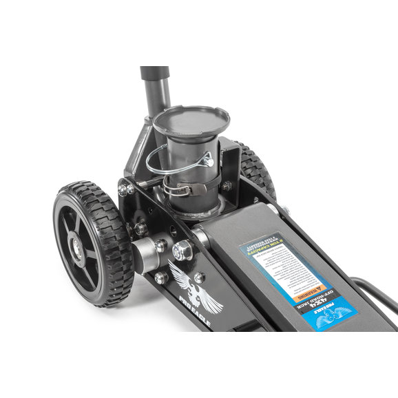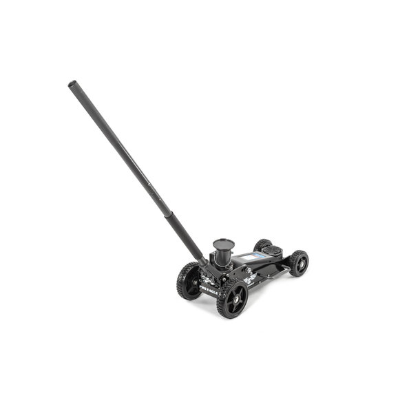 The "Beast" is the 2-Ton Big Wheel Off Road from Pro Eagle. This monster is made with solid axles and non-pneumatic composite wheels for the ultimate ability to tackle the uneven terrains you may find yourself in. To handle taller suspensions an adjustable extension is included giving you a total max height of 26" (Taller extensions sold separately), and when not in use is kept conveniently on board the jack. Minimum clearance is 6".