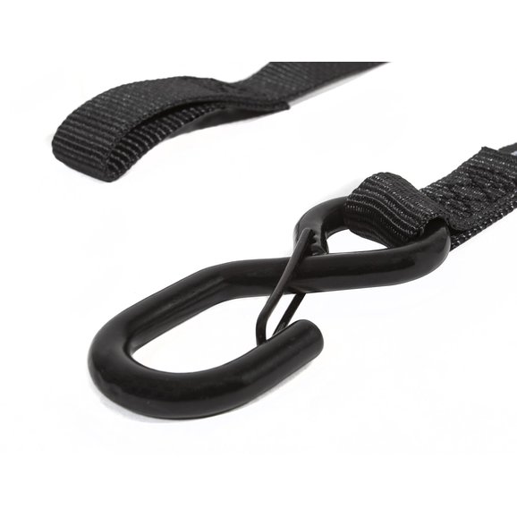 These tie downs feature an aluminum insert that allows for an amazing bite that keeps your items tie down tight for extended periods of time. Each tie down comes with a heavy duty 9.5mm coated "S" hook with a retention clip to keep the hook secured until your strap is tightened down. These straps have a 1200lbs maximum rated capacity, with 400lbs safe working load. Choose between Snap 'S' Hooks or Snap 'S' Hooks & Soft Tie Down options.