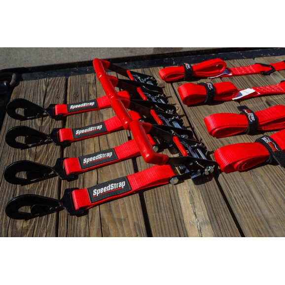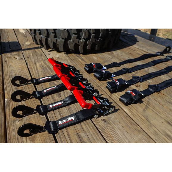 Installation of the SpeedStrap Off-Road Tie-Down Kit is straightforward, thanks to the user-friendly design and included hardware. The straps are equipped with heavy-duty hooks that provide a secure attachment point, ensuring that your gear remains firmly in place even on rough terrain. The bright red webbing enhances visibility, making it easy to identify and manage the straps during loading and unloading. With its versatile design and high-quality materials, the SpeedStrap Off-Road Tie-Down Kit is a must-have for anyone looking to transport their off-road equipment safely and efficiently.