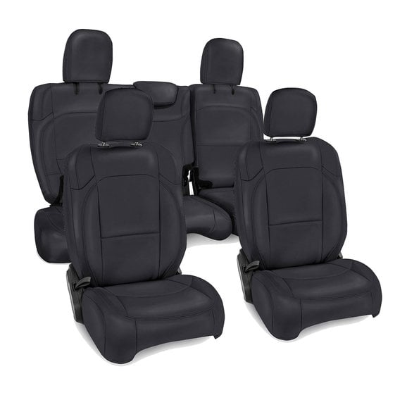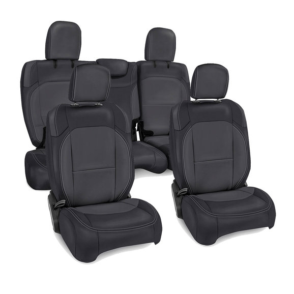 Instantly give your Jeep Wrangler JL’s interior a tough yet sophisticated upgrade with a set of Vinyl Front & Rear Seat Covers from PRP Seats. This set of seat covers are made from high-quality marine-grade vinyl that can keep your factory upholstery looking brand new. Simply slip the seat covers over the existing seat, and you are off on your next adventure. Hand crafted to specifically fit your JL 2 door interior, the seat covers are available in 5 different color options to suit all tastes. Each front seat cover is side airbag compliant. Includes covers for seat back, seat cushion, and headrests.