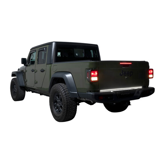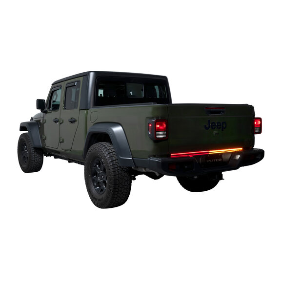 Illuminate the rear of your Jeep Gladiator JT with the Putco Blade 48" LED Tailgate Light Bar. This low-profile light strip emits over 3,000 lumens for supreme reverse visibility and safety. Also equipped with run red running, brake, and hazard operation, with amber turn signals for that custom touch and added safety. The seamless LED design lines up perfectly under the tailgate and just above the rear bumper. The kit includes your choice of a 4 Pin Wiring Harness or a vehicle-specific hidden plug (when selected) that allows you to connect the Blade LED bar to your vehicle's tail lights without any cutting or splicing of wires. Enhance the lighting and style in the rear of your Jeep Gladiator JT with the Putco Blade 48" LED Tailgate Light Bar.
