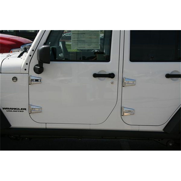 Give your Hood & Doors a custom look with a Putco Chrome Trim Hinge Cover Kit for Jeep Wrangler JK. This Trim Kit is made of Automotive Grade ABS Chrome. Package includes chrome trim accessories designed specifically for your vehicle! All parts are no drilling, no cutting, and easily installed in seconds via pre-applied Red 3M™ tape! Enhance the doors & hood of your Jeep JK with Putco's Chrome Trim Kit.