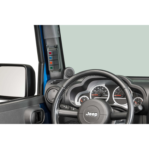 It's the perfect size for a many uses to fit just about anywhere. One of our most powerful LED lights, the compact design houses six 5W Cree LEDs into each precision die cast aluminum housing. The powerful and bright 6000K light output is close to natural sunshine and available in 90° Flood and 8° Spot beam patterns. Durable waterproof construction has an IP 67 rating and features unbreakable polycarbonate clear lenses. Heat sink finned housings feature a satin black powder coat finish. Kits include stainless steel hardware and mounting brackets. Industry standard Deutsch-style connectors feature weather tight seals for years of trouble free service. Comes with Quadratec's 3 Year Limited Warranty. Lamps are not legal for use on public roadways and are intended only for off-road use. Sold in pairs. Custom plug-n-play Auxiliary Light Harness available separately. The Daystar Switch Pillar for the Wrangler JK has premolded cut outs allowing up to four rocker switches. Mounting auxiliary switches up and out of the way from the dash and shifter allows for easy reach and use. Black finish to match your vehicles interior for the ultimate look.