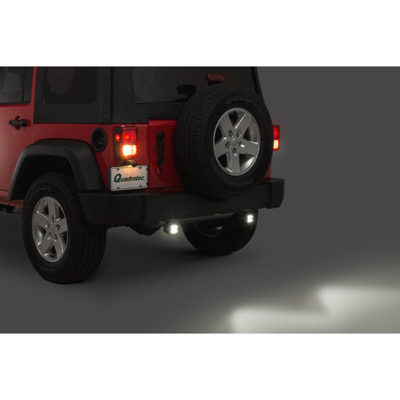 Our exclusive Rear Backup Light Kits for your Wrangler JK provide incredible visibility at night. Our plug and play wiring harness turns on the LED accessory lights in conjunction with your factory back up lights whenever your Jeep is placed in reverse gear without the need for an additional switch. The wiring attaches to your left tail lamp to power the included pair of Quadratec 3” LED cube lights. Each cube light features six 5W Cree LEDs and precision die cast aluminum housings. The powerful and bright 6000K light output is close to natural sunshine and features a 90° Flood beam pattern. The 4mm thick powder coated steel brackets mount directly to the rear cross member using existing bolts. There’s NO drilling, cutting, or splicing required and installation takes only minutes. Includes a three year limited warranty.