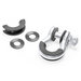 The Quadratec molded polyurethane D-ring isolators snap into the inner perimeter of standard shackles providing cushioned protection for synthetic recovery lines. Isolator kits include two isolators that eliminate the metal to metal contact of the bumper and D-ring. The included 4 urethane washers isolate the shackle pin from the clevis tab to eliminate annoying rattles. Ther D-Ring isolator kits work with all 3/4” D-Rings with 7/8” diameter pins and are available in your choice of red or black polyurethane.