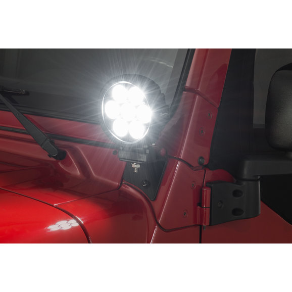 Quadratec 6" Round LED Lights with Wiring Harness & Windshield Mount Brackets for 97-06 Jeep Wrangler TJ & Unlimited