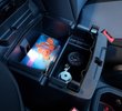 Premium Storage Tray: A one piece tray that will help conceal items stored below and allow you to organize daily essentials. Divided into 2 storage areas with a change holder on the side.
