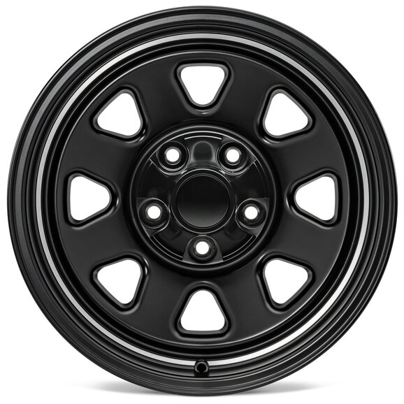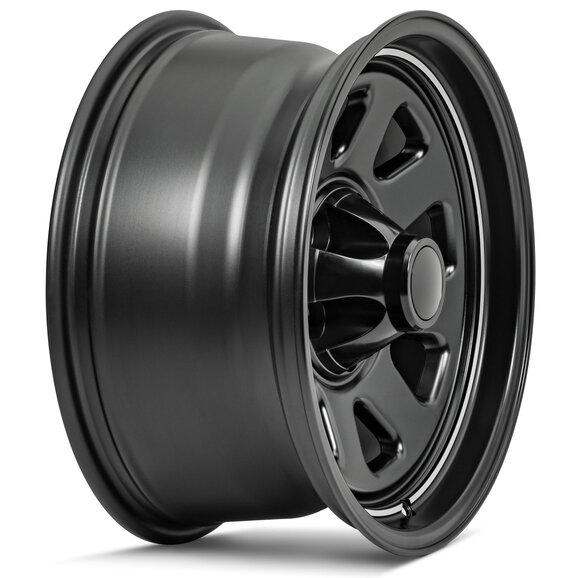 Inspired by the original factory CJ steel wheels of the 70s and 80s, the Quadratec CJ Retro Alloy Wheels feature a high tech pressure cast aluminum construction with cool styling tweaks. Our exclusive wheels give a nod to the glory days when the Jeep® CJ Renegade and Laredo ruled. Our updated 15” x 8” wide aluminum wagon wheels feature the proper 4.0” backspacing for Jeep CJ fitment and are hub centric. The raised machined pin stripe and separate injection molded center cap nicely echo the original while providing a modern finishing touch.