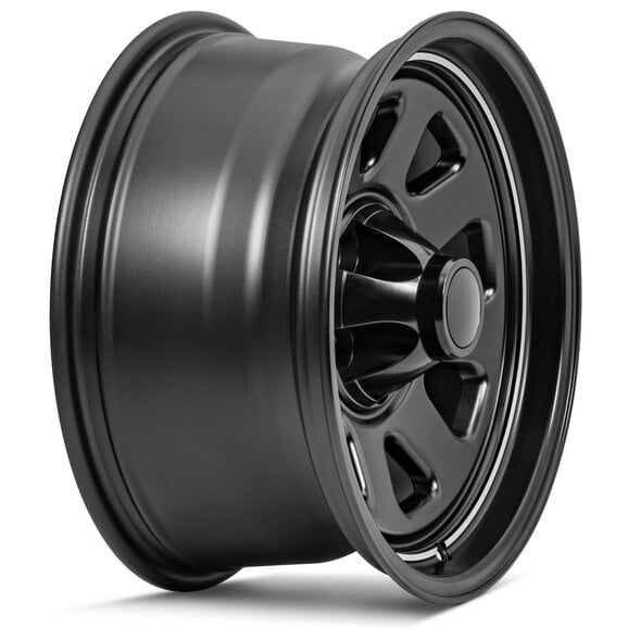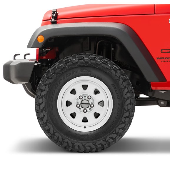 Inspired by the original factory CJ steel wheels of the 70s and 80s, the Quadratec CJ Retro Alloy Wheels feature a high tech pressure cast aluminum construction with cool styling tweaks. Our exclusive wheels give a nod to the glory days when the Jeep® CJ Renegade and Laredo ruled. Our updated 17” x 8.5” wide aluminum wagon wheels feature the proper 5.2” backspacing for JK and JL Wrangler fitment and are hub centric. The raised machined pin stripe and separate injection molded center cap nicely echo the original while providing a modern finishing touch.