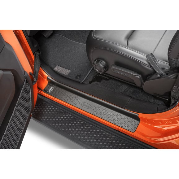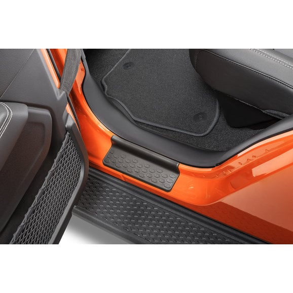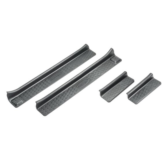 The Quadratec Custom Fit Entry Guards are the perfect accessory for doorway protection on your Jeep Wrangler JL 4-door or Jeep Gladiator JT. Unlike other entry guards, this exclusive design offers the most coverage of the Jeep's door sills, providing the ultimate protection against scuff marks or paint chipping. The injection-molded guards provide a precision fit and install in minutes with no drilling or modifications to the Jeep. Made from virtually indestructible black TPE (Thermo Plastic Elastomer) material, these guards are built to stand up to a lifetime of abuse. The polygon tread design echoes many other original equipment accessories, and the included 3M peel and stick adhesive allows for quick installation over the factory door sills. The entry guards are backed by the Quadratec 3 Year Limited Warranty. Made in the USA.