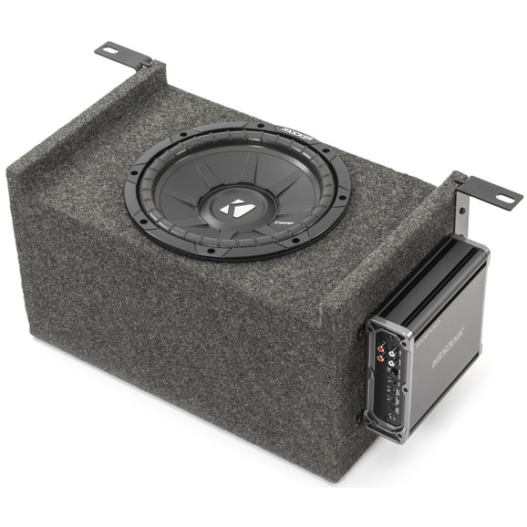 Upgrade the stereo in your Jeep Wrangler YJ or TJ with the Quadratec Custom Rear Subwoofer Kit with 10" Kicker CompS Subwoofer. This custom-made Wrangler specific kit directly bolts into place behind the rear seat using existing cargo loop bolts. No cutting, drilling, or other modifications are required for installation. A remote bass controller is also included with this kit for for easy level adjustment. The JWSUBK10 is assembled right here in the USA, and carries a 1 year warranty.