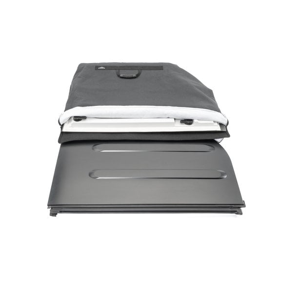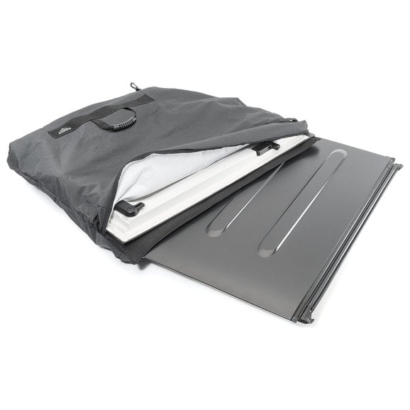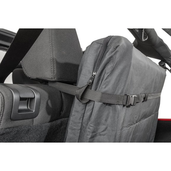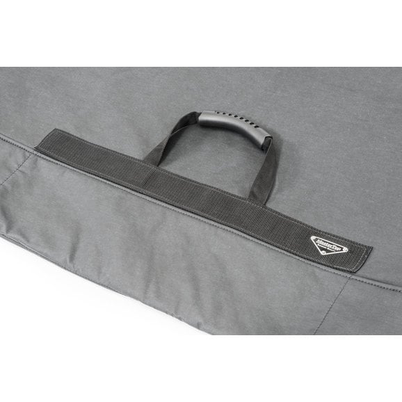 The freedom panels provide that open air experience but once removed, keeping the freedom panels on board with you can be a big headache. You want to keep the hardtop panels with the vehicle if the weather turns but you don’t want them bouncing around in the cargo area and getting damaged. The MasterTop Storage Bag for Hardtop Freedom Panels provides the gentle and convenient storage you desire. The durable black vinyl coated OEM Approved Soft Top Fabric has a soft non-woven backing with interior pockets for each panel to protect them from scratches. The outside carry handle also provides easy attachment to the back of the rear seat headrests and lower cargo ring providing secure and compact storage on the go.