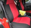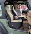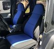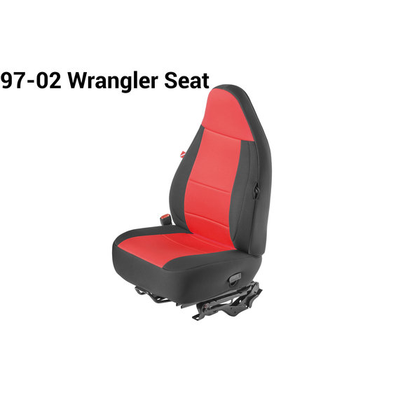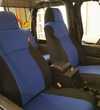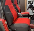 It’s like having custom made wet-suits for your Wrangler seats! Protect upholstery from water, dirt, grime and normal wear and tear while adding a customized look. Quadratec’s Exclusive Diver Down seat covers make an excellent choice for Jeepers with active lifestyles. Our custom fit seat cover kits are cut and patterned to each specific vehicle providing an exact fit like the original upholstery. Seat covers feature black neoprene backs and sides with your choice of seven great inner panel colors to provide the ultimate interior makeover. The genuine neoprene material provides lasting durability with a soft cushioned feel. Our neoprene seat cover material has an excellent thermal resistance that stays cool to the touch on hot days yet warmer during the colder months. Diver Down seat covers retain all seat functions with provisions for side airbags if equipped. Kits come complete with front and rear seat cover pairs along with four headrest covers. Front seat backs feature handy map pockets with generous storage capacity. Our do-it-yourself kits install in minutes over the existing upholstery using a combination of straps, buckles, elastic and hook & loop fasteners and there are no tools required. Hand wash and air dry.