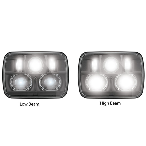 Our revolutionary Premium Heated High Performance 5”x7" LED Headlights for your Cherokee XJ & Wrangler YJ are exclusively engineered for Quadratec by J.W. Speaker and offer Dual-Burn® high & low beam optics, giving drivers that ultimate punch of light they are looking for at night. Our unique heated Headlamps feature SmartHeat® with LED light sensors that automatically activate the heat elements at startup or as outside temperatures drop to freezing. Once any accumulated ice or snow has melted and the lights have met the high temperature threshold, the SmartHeat® grid system automatically shuts off. All Premium LED projector head lamps feature fully approved DOT markings and easy plug & play installation with no modifications required.