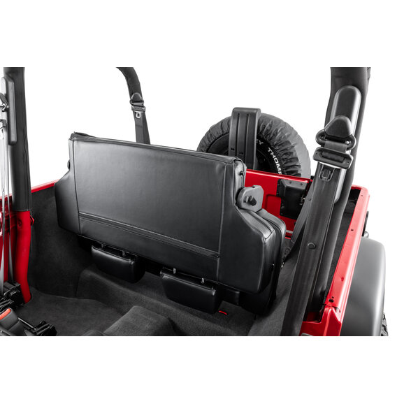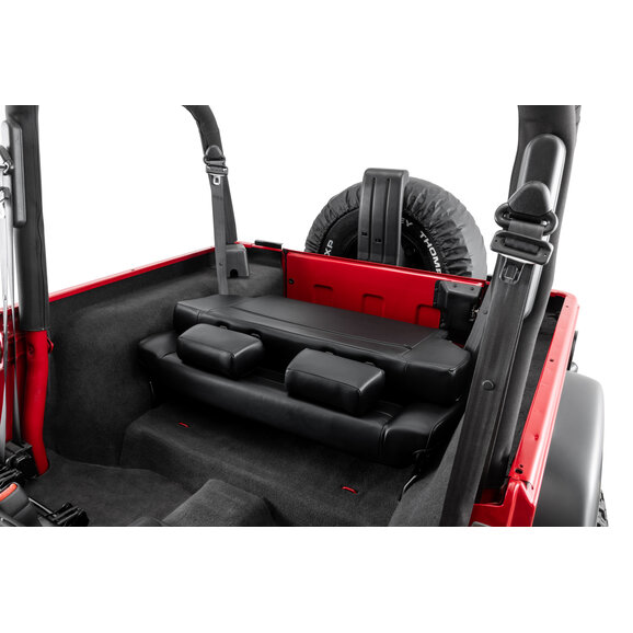 The Quadratec Heritage Fold and Tumble Rear Seat is exclusively engineered to fit Wrangler TJ vehicles and provides maximum comfort and long-lasting durability. With its functional fold-and-tumble feature, this rear seat enhances your vehicle's cargo space for everyday driving, while its simple, no-drill installation can be accomplished with basic shop tools. Seats offered in black, gray, or spice and include all installation hardware.