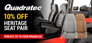 Quadratec's Heritage Premium Front Seating is an excellent replacement option for 1976-2006 Jeep CJ and Wrangler vehicles, helping add comfort and style to your driving adventures. These premium vinyl seats come standard with a stylish double-stitched pattern in three custom colors that will enhance your Jeep’s classic appearance. Seats are UV-resistant and built with high-density, flame-resistant foam. Additionally, they offer an integrated headrest, fixed back support, and reinforced bottom bolsters to keep you centered in your seat during all driving conditions. CJ and YJ owners can simply install to factory mounts utilizing basic shop tools, while TJ owners need additional adapters (sold separately). Seats can be purchased individually or in a pair, and feature a three-year warranty.