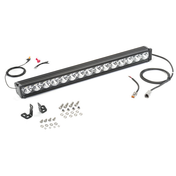 More than a powerful off-road light bar! Quadratec’s patented J3 Light Bars feature genuine CREE LEDs and three integrated amber halo rings that can be illuminated by your parking light switch with our optional plug-n-play harness. Fact is, most forward lighting should not be turned on while driving on public roads. Even though LED light bars are extremely popular, they are seldom used and serve a more decorative purpose on the road. Not anymore. The built-in marker lights on our exclusive J3 LED Light Bars feature unique amber halo rings with the same commercial DOT vehicle spacing as our J5 Light Bar. The dual-purpose feature provides more utility and an additional “cool factor”. The 28” J3 Light Bar features six 30° flood beam lamps and nine 10° spot beam lamps with 150 watts of total power. Light bar side mount brackets included for universal mounting. Custom mounting brackets and wiring kits are available separately. The durable, powder-coated die-cast aluminum housing is built to endure aggressive off-road use and features stainless steel hardware. Assemblies have an IP69 waterproof rating and industry-standard Deutsch-style connectors with weather tight seals for trouble-free service. Deluxe Plug-N-Play wiring harness and hood mounts are available separately or in select kits.