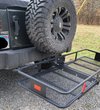 As much as we love our Jeeps, the limited rear cargo space is sometimes inadequate. A Quadratec Receiver Hitch Cargo Rack is an excellent solution. The simple convenience of adding additional payload when you need it makes these handy units indispensable. Fits into any 2" receiver hitch tube to provide instant storage for camping gear, luggage, hunting trophies, gardening materials, coolers and perhaps this years Christmas tree. Quadratec's receiver hitch cargo racks make easy hauling for nasty, dirty stuff like this week's trash, greasy car parts, sacks of concrete and bags of mulch. All without making a mess of the inside of your vehicle. Our cargo racks are designed for a Class II receiver hitch and are rated to hold up to 300lbs cargo capacity but may be limited by a lesser vehicle or hitch capacity rating. These are a great value for those needing a basic cargo rack that is optimized for Jeep applications. The Jumbo basket measures 60"L x 24"W floor with 6' tall sides. When installed, the rack will limit how far the tailgate can open.