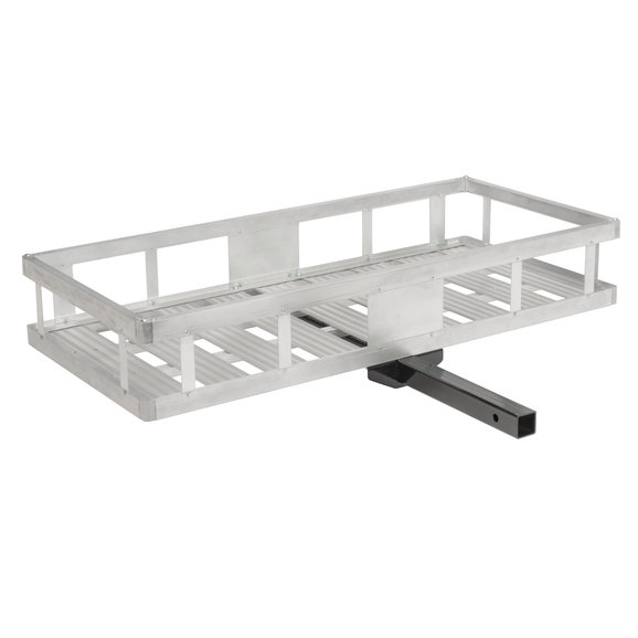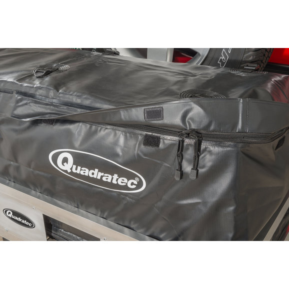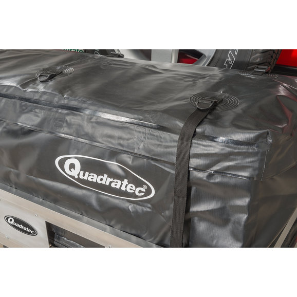 Fits into any 2” receiver hitch tube to provide instant storage for camping gear, luggage, hunting trophies, gardening materials, coolers and perhaps this years Christmas tree. Our cargo racks are designed for a Class II receiver hitch and are rated to hold up to 300lbs cargo capacity but may be limited by a lesser vehicle or hitch capacity rating. These are a great value for those needing a basic cargo rack that is optimized for Jeep applications. Aluminum basket measures 49.5”x22.5” floor with 8” tall sides. Jumbo Rain-Proof Cargo Storage Bag measures 48" Wide x 19" Deep x 14" High and features an additional 4” expandable bottom for jumbo sized loads. Made exclusively for Quadratec, this amazing value has quality construction features like fully waterproof PVC Coated nylon material, industrial zippers, hook & loop storm flap closures and heat sealed seams. 6 built-in cinch down straps keep the cargo bag secured to your rack.