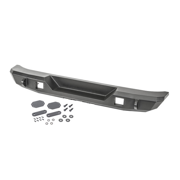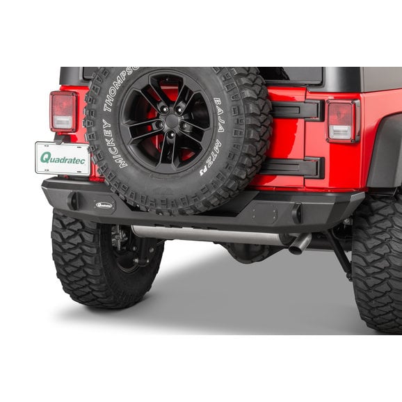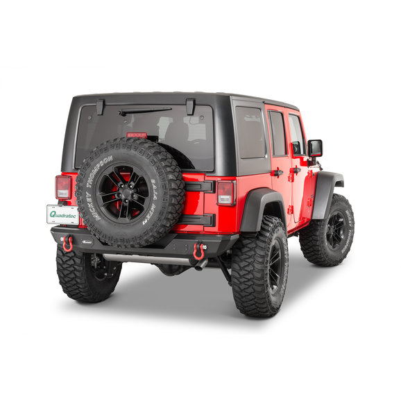 Quadratec’s Mid-Width Rear Bumper for JK Wrangler features a 4mm thick steel construction and a one piece design that bolts to existing mounting points with no drilling or modifications. Bumpers can accommodate up to a 35” spare tire and measure 64” wide to provide increased tire clearance. Other features include D-ring mounts, installation hardware and detailed instructions. Bumpers are e-coated for corrosion resistance and finished with a durable black textured powder coating. There are two removable cover plates that reveal integrated light mounts for most standard 3” cube lights or surface mount style lights. Our optional plug-n-play rear backup light harness is included with the light kit options and makes installing rear backup lights quick and easy. Works with all popular tow hitches (sold separately). Three year limited warranty.