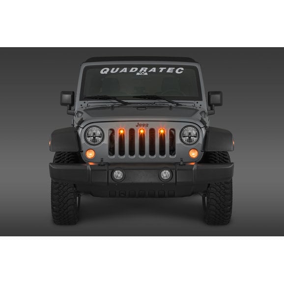 Our Pre-Runner LED Light Bar Kit fit all ’07-18 JK factory grills and come complete with 16 gauge steel mounting brackets, three water proof amber LED marker lights and wiring harnesses. The mounting brackets feature a durable black powder coat finish for lasting durability. Add 3 pre-runner style lights to the inside of your grill with our no-drill plug-n-play installation. The included custom harness plugs directly to the left marker lamp to power the unit when the marker lights are on. Not just cool bling, the Quadratec Pre-Runner LED Light Bar functions as a useful auxiliary running light feature! Limited three year warranty. Not compatible with grille inserts or hood locks.