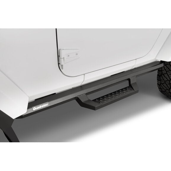 In addition to their practical benefits, the Quadratec Drop Steps also enhance the overall safety and protection of your Jeep. The non-slip surface ensures secure footing, even in wet or muddy conditions, reducing the risk of slips and falls. These side steps also provide added protection to your Jeep's rocker panels from rocks and debris encountered during off-road excursions. Installation is a breeze with the bolt-on design, utilizing factory mounting points for a secure and hassle-free fit. With these side steps, you can enjoy the perfect blend of style, functionality, and protection, making your Jeep Wrangler JK 2-Door ready for any adventure.