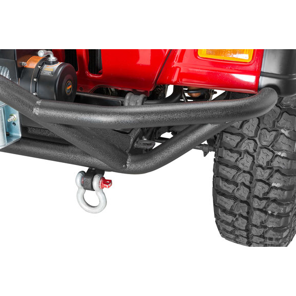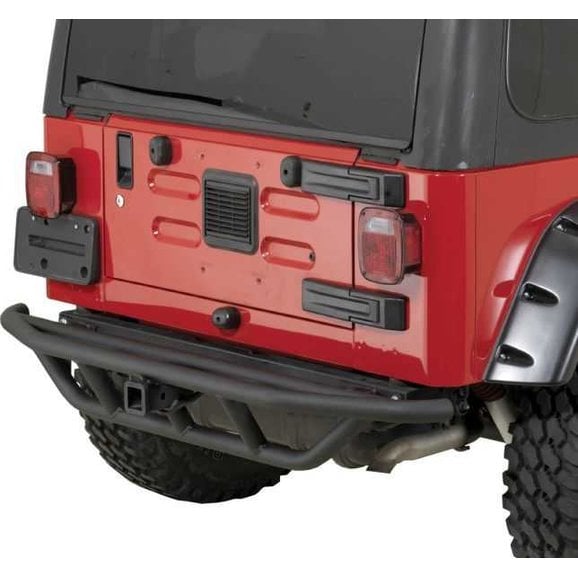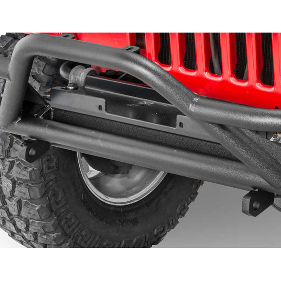 welded one piece design using 2" diameter x .105” thick mandrel bent steel tubing. The traditional styled QRC Rocker Guards boltOur heavy duty bumpers are designed, engineered and built for off road durability and feature sloping ends to provide greater tire clearance for enhanced approach angles. Constructed from 2 inch diameter tubing with .120” wall thickness for extreme trail protection and e-coated to prevent corrosion. The front bumper can accommodate an optional recovery winch and winch plate. The rear bumper Includes a 2” receiver for accessories such as cargo racks and bicycle carriers and is offered with an optional oversized spare tire carrier which can support up to a 35” spare tire. The Free QRC Rocker Guards for ’87-’06 Wrangler are a fully