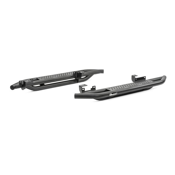 When tackling the trails in your Wrangler JL2-Door having a pair of rocker guards is key to keeping your Jeep protected. Not only do our QRC Side Armor with Step help protect but they also help you get in and out of your Jeep. These guards are a fully welded one piece design giving you wheel to wheel coverage making sure that you do not sustain damage from unforgiving rocks. The dimple die treads add strength and rugged looks while providing a useful entry step. Our QRC Rocker Guards are e-coated for external corrosion resistance and finished with an attractive and durable black textured powder coating. Installation is easy with our included hardware pack and detailed instructions. Sold as pair.