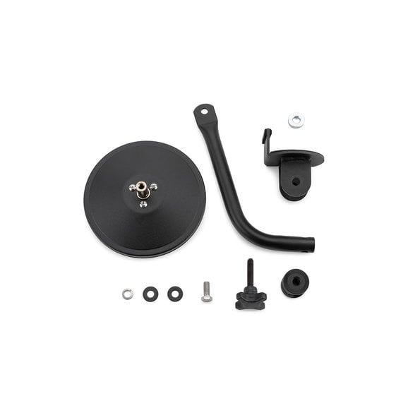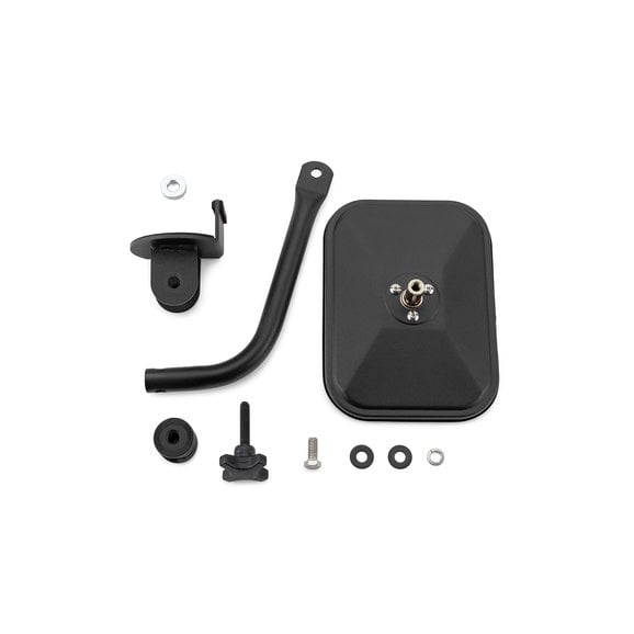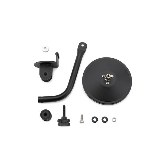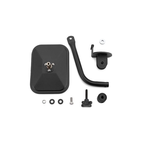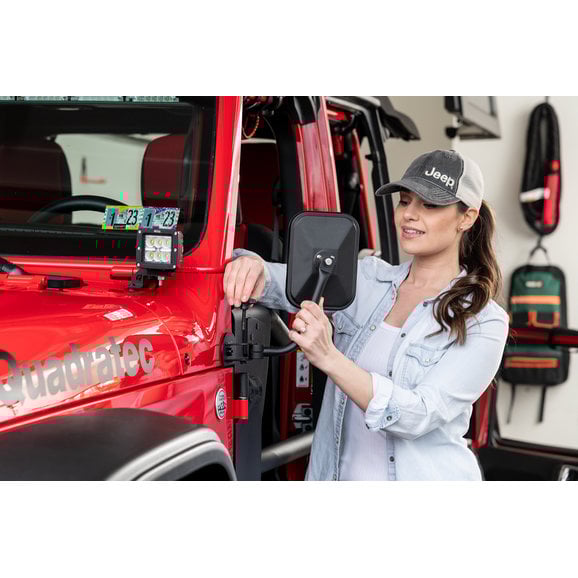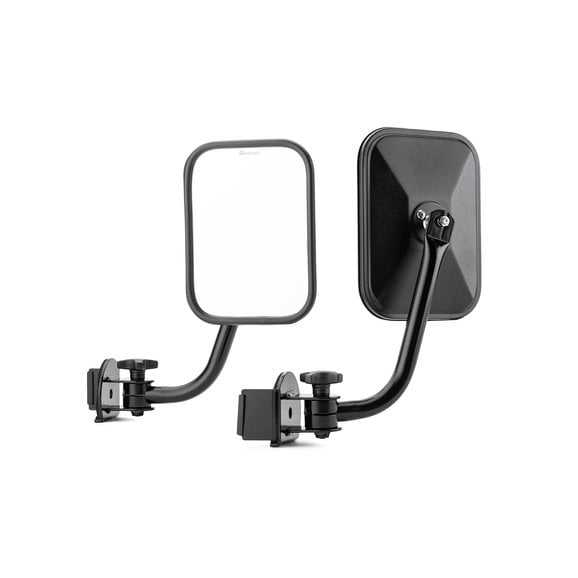 Quadratec's Quick Release Mirrors provide the driver and passenger side mirrors for your Jeep when the doors are off. The mirror and arm attach to the A-pillar using the existing bolt hole on the side cowl, installation is quick and easy and there's no drilling required. Once installed on the Jeep, the quick-release knobs allow the mirror heads and arms to be removed without any tools. The small mirror mount brackets remain attached to the A-pillar when the doors are back on and the factory mirrors are in position. An excellent choice when aftermarket tubular doors and cloth door options do not include mirror brackets. Quick Release Mirrors feature steel construction with a durable black powder coat finish for superior corrosion resistance. Includes Quadratec's billet aluminum mirror bushings that hold mirror arms firmly in place without slipping. Sold in pairs.