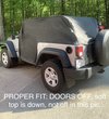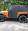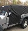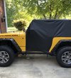Quadratec's 5 Layer Softbond Cab covers combine strength, breath-ability and hi-tech water protection with exceptional value. Engineered to keep out liquid moisture without trapping condensation while providing excellent protection from tree sap, insects and weather. Quadratec's 5 Layer Softbond Cab Covers feature top and bottom layers of soft non-woven polypropylene with a middle layer of water resistant film and a supplemental outer polypropylene layer for extra water protection. The ultra-soft inner fleece layer provides gentle contact to paint finishes. The custom tailored patterns provide an excellent fit that’s easy to install and remove protecting your vehicle from rain, dew, fog and sun. Our Black Cab Covers provide coverage even when the doors are removed and are optimized to fit the vehicle with the top assembly and door surrounds removed. The embossed quick drying, breathable fabric wicks moisture away from the vehicle while allowing air to circulate from both sides. Carry Tote included. One year limited warranty. Fits Wrangler JK 2-Door Vehicles.