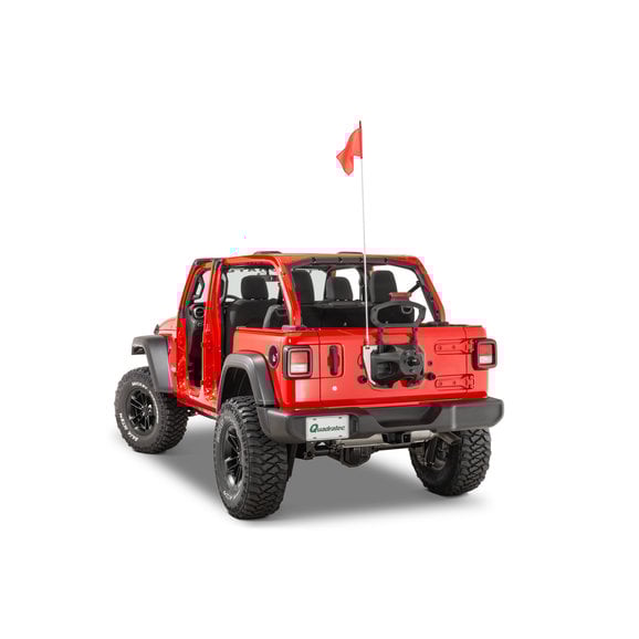 Whether you need a trail flag for dune bashing, sand racing, trail riding, rock crawling, or to meet safety spec, the Quadratec Trail Flag with Mount Kit is for you. This easy to install kit was specifically designed for the JL Wrangler. It conveniently bolts onto the left side of the factory spare tire bracket. The included five-foot flag pole is made from tough white fiberglass composite rod, and features a bright red nylon flag. The flag has reinforced stitching, so it can hold up to highway speeds without tearing or fraying. For corrosion resistance, the bracket is made from high quality stainless steel.