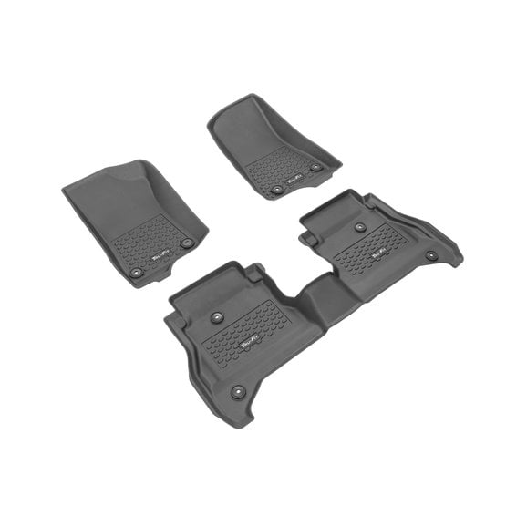 Give the interior of your Jeep Gladiator JT a refined look while adding a layer of protection with the Tru-Fit® Series Floor Liners. These protective floor liners are made from a lightly textured satin black TPE-V plastic material that ensures a snug fit that is water-tight and extremely durable. The front liners are essential in helping with keeping your footwear clean and dry while protecting your valuable flooring from corrosion or mildew. The recessed heel pads feature non-slip three-dimensional tread patterns that will retain dirt and water. Liners also feature OEM style retention provisions, where applicable, to secure your liners in place. The Tru-Fit® front liners feature deep-drawn sides to keep vulnerable floor areas clean and dry throughout the seasons. All Tru-Fit® Floor Liners are flexible but sturdy and the affordable choice over the competition. Protect your investment with the comfort, style, and convenience that you deserve. Whether you need just a cargo liner or a set of floor liners, the Tru-Fit® Series is a sure winner. Backed by Quadratec’s Three Year Limited Warranty.