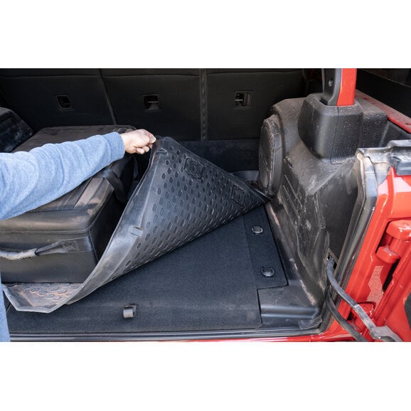 Stylish Protection: The Tru-Fit® Cargo Liner protects the vital floor areas of your Jeep Wrangler JL Unlimited in style! Made from durable TPE-V plastic material, these liners are flexible to ensure a snug fit to provide the ultimate in floor protection.