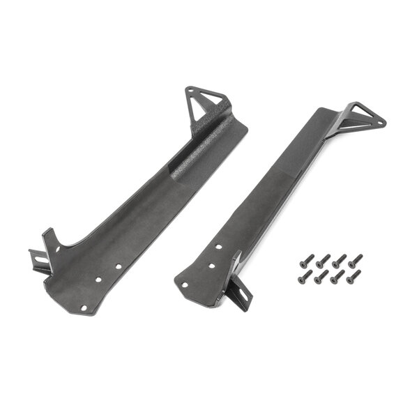 Step up your lighting game with the Quadratec Windshield Light Bar Brackets with J5 LED Light Bar & Carnivore J-Series Auxiliary Pod Lights for your Jeep Wrangler JK. The Light Bar Mounts are manufactured using 3/16" thick steel, laser cut and formed using a CNC precision press brake. They are designed as one piece construction with no weld seams for a smooth finished cosmetic look. No drilling or other modification is necessary for installation, they simply bolt to the windshield mounts using existing hardware. Precision cut Rubber Gasket liners are included with the light bar mounts to protect your vehicles paint from scuffing. Another unique feature with this Light Bar Mount is the ability to hide the LED light wiring by running it behind the bracket.