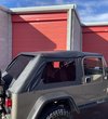 Get the Fastback style and frameless features you are looking for with the NEW Adventure Top Fabric Only Replacement Top. Designed for the Wrangler Unlimited LJ, this exciting new design uses your factory soft top hardware and door surrounds with the factory rear bow removed. By removing the rear bow, you get that Fastback look and added features found only on up-graded full top designs. Remove the windows and you get a Bimini/Safari type top. Fold back the oversized built-in sunroof feature and you truly have the ultimate open-air soft top! The Adventure Top is easy to install and features only two vertical rear zippers for ease of use and fast installation. Each top is constructed of quality 25 oz Black Denim material that provides the very best in looks and durability. As with all Adventure soft tops, we only use extra heavy duty 30 mil 31% tint press polished glass for the ultimate in durability and protection from the sun. When you want all the features of a frameless top but do not want to replace your soft top hardware, the Adventure Fastback replacement top is for you! 3-year limited warranty.