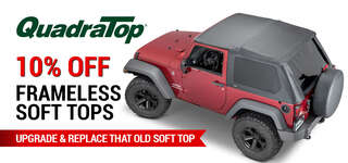 Multiple options: The Adventure Top S Soft Top can be used as a fully enclosed soft top, or easily flip back the front section so the front seat passengers can enjoy open-air driving. All three windows can be zipped out and the Adventure® Top S transforms into a full-length Bimini Top.