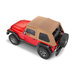 Quadratec's exclusive QuadraTop Adventure® Top™ for TJ features an Expanded Fold Back Sunroof! This frameless-style fastback top is specifically designed for the Jeep Wrangler TJ and comes complete with all of the necessary hardware for an easy installation. The included door surrounds, tailgate bar, windshield header, fabric top and windows make this complete kit. The Adventure Top™ features an extra-large easy-to-use fold back sunroof section providing quick open-air enjoyment for the front seats. This expanded opening is twice as large as the factory soft top opening and easily opens and closes. The fold-back sunroof design is easily engaged by simply stopping the vehicle; unlatching the two header clamps & side attachments and folding it back! You can have open-air driving in a matter of seconds! Installation of the TJ Adventure Top is easy with the majority of the components pre-installed at the factory using quick-release fasteners for the ultimate in flexibility; easy to install, easy to use! All Tops include tinted 30 mil press polished windows for long life and protection from the hot sun. The unique C-channel window attachments combined with heavy-duty zippers make installation and window removal a breeze. The Adventure Top will provide lasting durability and unique restyling with the ride comfort you want and protection from the elements that you need. Available in Black or Spice colors and with or without upper ½ doors.