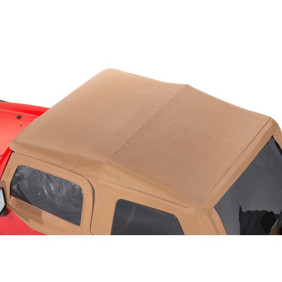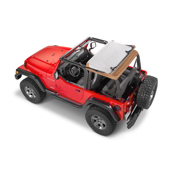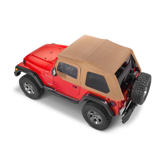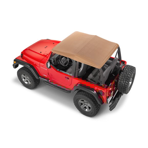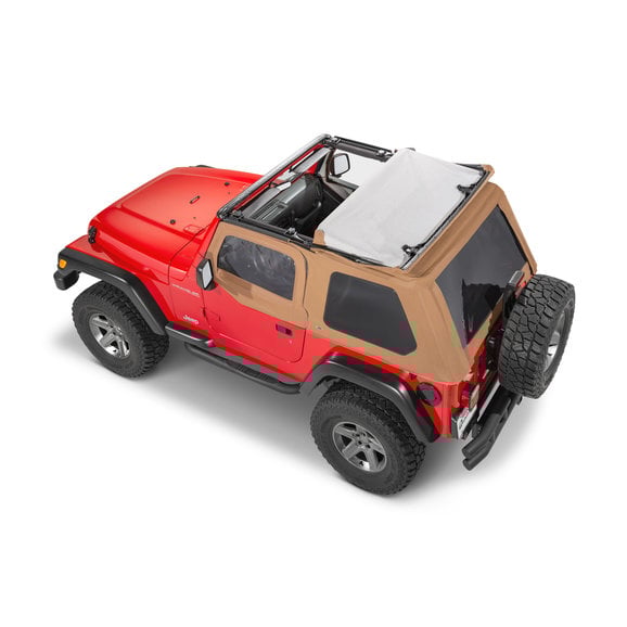 Quadratec's exclusive QuadraTop Adventure® Top™ for TJ features an Expanded Fold Back Sunroof! This frameless-style fastback top is specifically designed for the Jeep Wrangler TJ and comes complete with all of the necessary hardware for an easy installation. The included door surrounds, tailgate bar, windshield header, fabric top and windows make this complete kit. The Adventure Top™ features an extra-large easy-to-use fold back sunroof section providing quick open-air enjoyment for the front seats. This expanded opening is twice as large as the factory soft top opening and easily opens and closes. The fold-back sunroof design is easily engaged by simply stopping the vehicle; unlatching the two header clamps & side attachments and folding it back! You can have open-air driving in a matter of seconds! Installation of the TJ Adventure Top is easy with the majority of the components pre-installed at the factory using quick-release fasteners for the ultimate in flexibility; easy to install, easy to use! All Tops include tinted 30 mil press polished windows for long life and protection from the hot sun. The unique C-channel window attachments combined with heavy-duty zippers make installation and window removal a breeze. The Adventure Top will provide lasting durability and unique restyling with the ride comfort you want and protection from the elements that you need. Available in Black or Spice colors and with or without upper ½ doors.