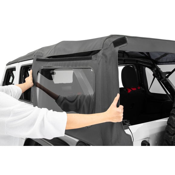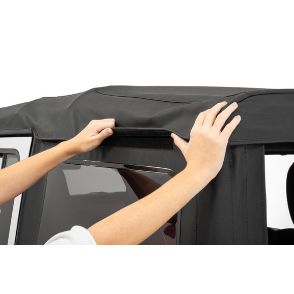 Premium Fabric: The Complete Top soft top comes in your choice of three-layer 25oz Black Diamond material or Quadratop's exclusive Sunbrella® engineered by Haartz® 30oz black performance fabric known for fade-resistance and durability.