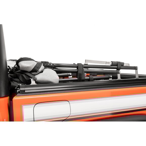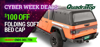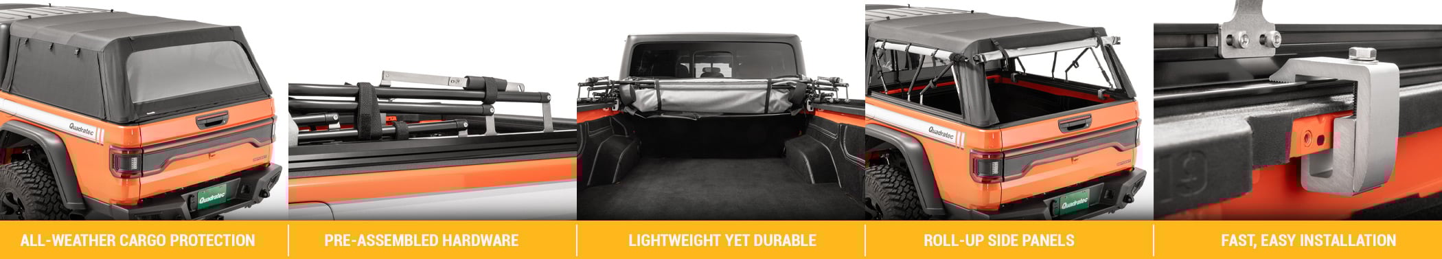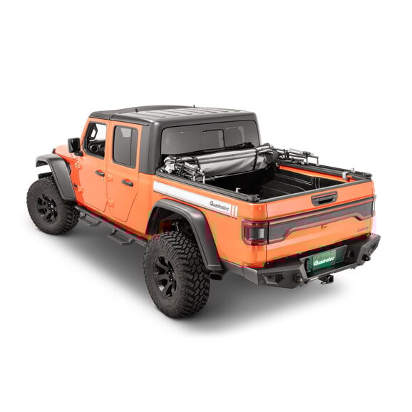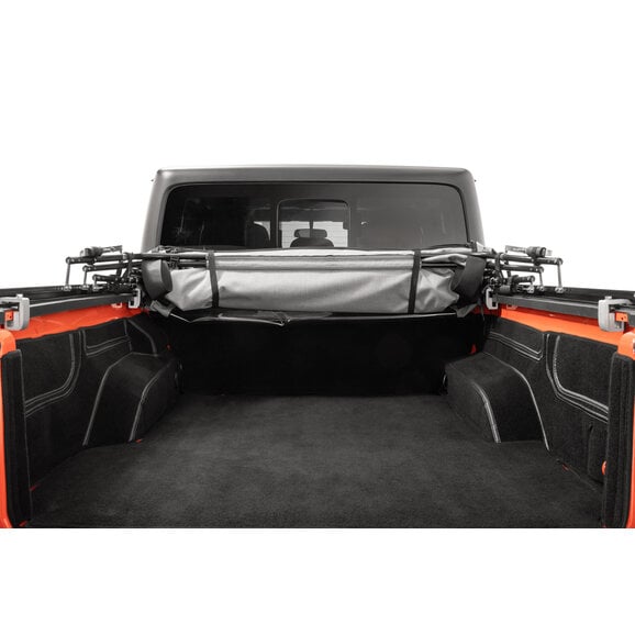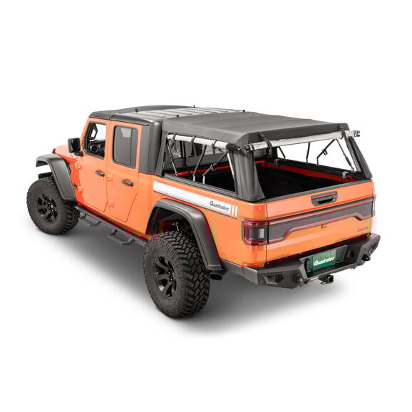 The QuadraTop Folding Soft Bed Cap for the Gladiator JT is a practical and lightweight solution designed to protect your cargo while maintaining your Jeep's rugged versatility. Built to offer superior all-weather protection, this soft bed cap shields gear from rain, snow, sun, and would be theft—perfect for both everyday use and overlanding adventures. The preassembled subcomponent design makes installation fast and hassle-free, requiring no drilling or permanent modifications. Its unique clamping system is compatible with both standard bed rails and the optional Trail Rail System, giving Jeep owners flexible mounting options right out of the box.